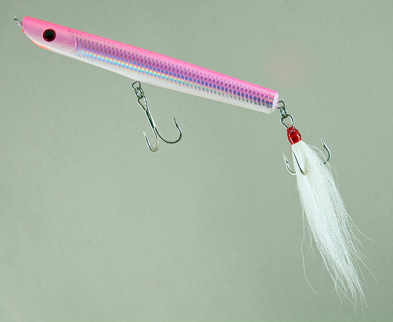 Gibbs Needlefish Lures are very effective up-and-down the Coast. The desired action is one of no action but the waters current. A slow, steady retriever at or just below the surface will produce a symmetrical V-wake that will obtain the desired result.